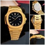 The Patek Philippe Nautilus Ever Gold is a striking choice for anyone who appreciates fine timepieces. With a generous 42mm dial size, this watch makes a bold statement on the wrist. The original ridged dial and exclusive black textured surface come together to create a captivating aesthetic that is both sophisticated and stylish.