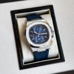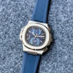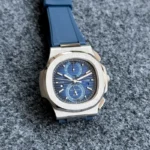 The Patek Philippe Nautilus Time Travel 5990/1A watch is a striking accessory for those who appreciate both elegance and functionality. With its beautifully textured blue dial, this watch doesn’t just tell time; it tells a story of craftsmanship and style. The white hands and minute markers stand out clearly against the sapphire glass, making it easy to read in any light.