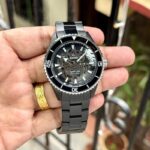 The open skeleton dial reveals the intricate workings of the high-performance automatic movement, offering a fascinating view into the heart of precision engineering. The black ceramic rotating bezel adds a touch of sophistication while ensuring durability.