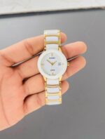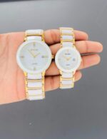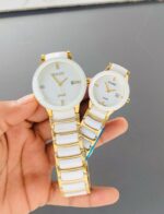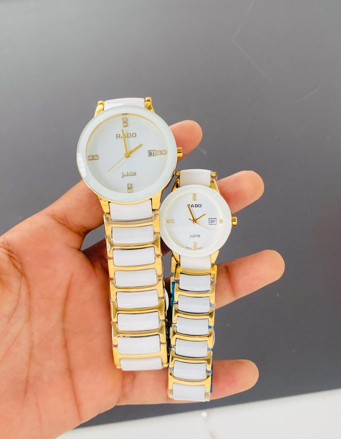 The Rado Centrix Jubile Couple White watch set is a stunning representation of contemporary watchmaking, perfectly tailored for couples who appreciate elegance and simplicity. With its pristine white ceramic bracelet and sleek design, this set exudes an effortless charm that suits any occasion.