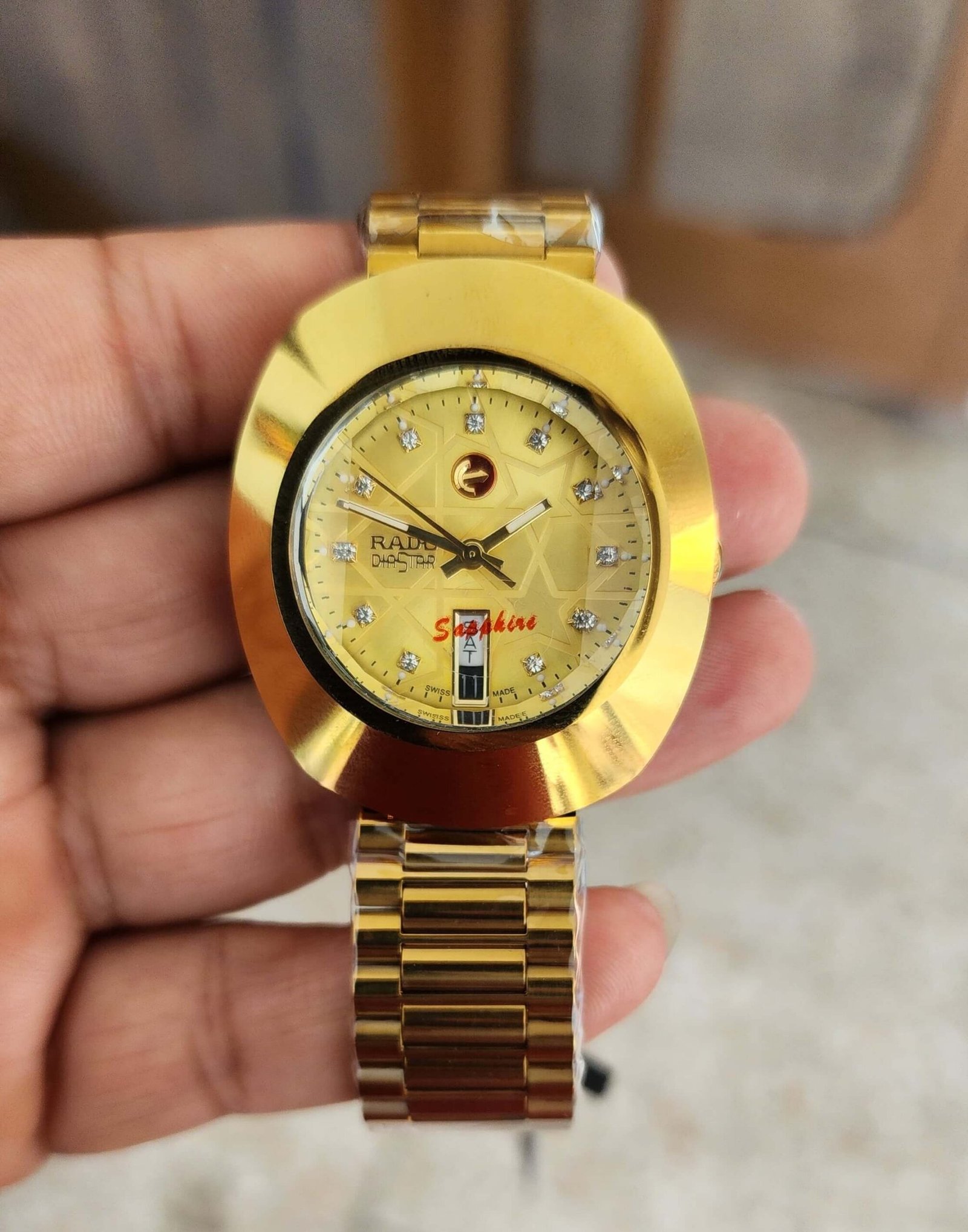The Rado Diastar Automatic Gold Diamond Dial is the perfect watch for anyone who values both style and function. This watch features a stunning gold diamond dial that catches the light beautifully, making it an eye-catching accessory for any occasion.