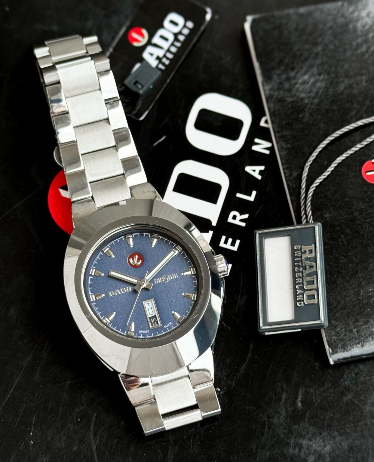 The Rado Diastar Silver Blue Dial is designed for those who appreciate both functionality and style. With a bold 42mm case, this watch makes a statement on any wrist. The striking blue dial not only adds a pop of color but also features a practical day and date indicator, making it perfect for everyday wear.
