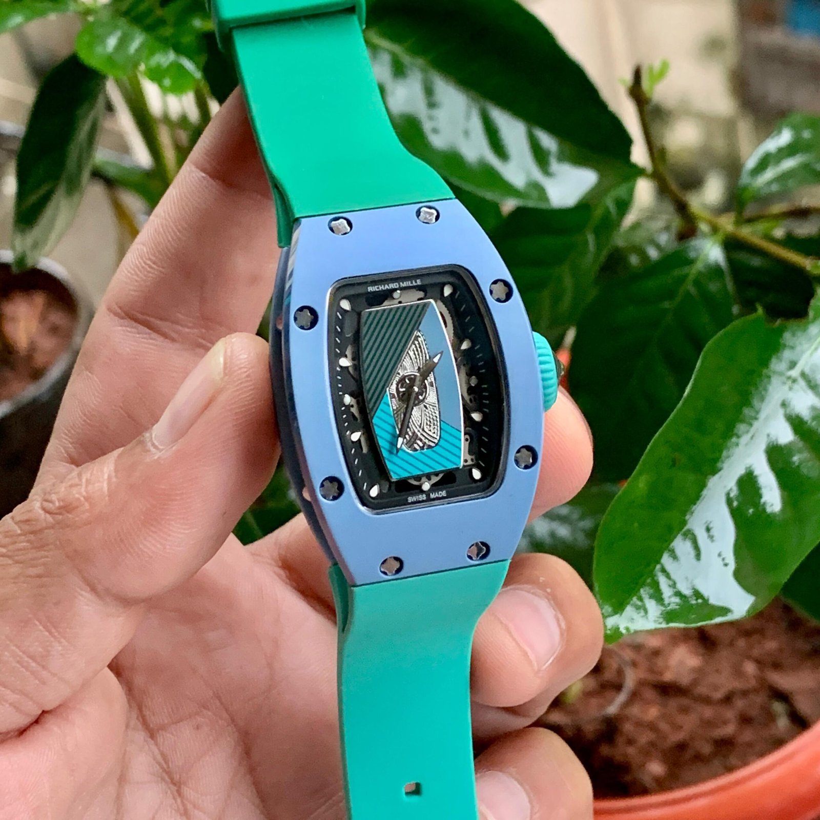 The Richard Mille RM 07-01 Pastel Blue is a stunning piece that embodies both elegance and innovation, designed for those who appreciate unique style. The beautiful pastel blue ceramic case is complemented by a colorful dial that draws the eye and sparks conversation.