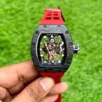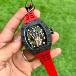 With its Japanese self-winding automatic movement, this watch promises reliable performance. The high-grade red silicone strap with an original buckle ensures comfort and durability, making it a perfect companion for any occasion.