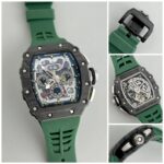The Richard Mille RM11-03 Green Edition is a perfect blend of cutting-edge design and functionality, tailored for those who appreciate both style and performance. With its glareproofed sapphire crystal, this watch ensures clarity in any lighting condition, while the case made from carbon TPT offers unparalleled durability without sacrificing elegance.
