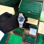 The Rolex Day-Date 41 Blue Dial Watch is an embodiment of elegance and sophistication. With its striking blue dial, this watch doesn’t just tell time; it makes a statement. The full silver body and jubilee chain create a harmonious blend of style and functionality, perfect for any occasion.