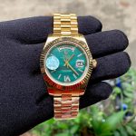 The Rolex Day-Date Green Dial with Diamond Accents is a stunning addition to any watch collection. With its vibrant green dial, this timepiece not only tells time but also makes a bold fashion statement. The diamond accents add a touch of sophistication, elevating its overall appeal.