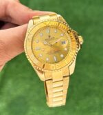 The Rolex Yacht Master Full Gold watch is a statement piece designed for those who appreciate elegance and functionality. With its stunning golden dial and robust stainless steel chain, it seamlessly combines style with superior craftsmanship.