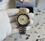 The robust stainless steel case measures 42.5mm, providing a substantial yet comfortable presence on the wrist. The rotating bezel allows for easy tracking of elapsed time, whether you’re timing a workout or monitoring your cooking. The five-row bracelet offers both durability and a sleek aesthetic that suits any occasion.