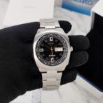 The Seiko Recraft SNKM97 is a timepiece that beautifully marries classic design with modern functionality. With its sleek 41mm stainless steel case and striking black dial, this watch stands out while remaining versatile enough for any occasion.