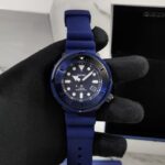 Coupled with a blue tachymeter rotating bezel, this watch not only looks great but serves as a useful tool for measuring speed. The high-grade blue silicone strap with a pin buckle not only provides a comfortable fit but also complements the overall aesthetic. Powered by Seiko’s reliable solar quartz movement, this watch guarantees precision and efficiency.