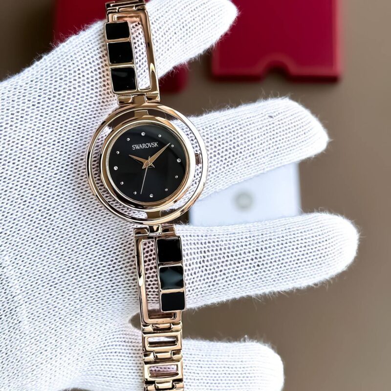 - Rose gold and black accents with Swarovski crystals