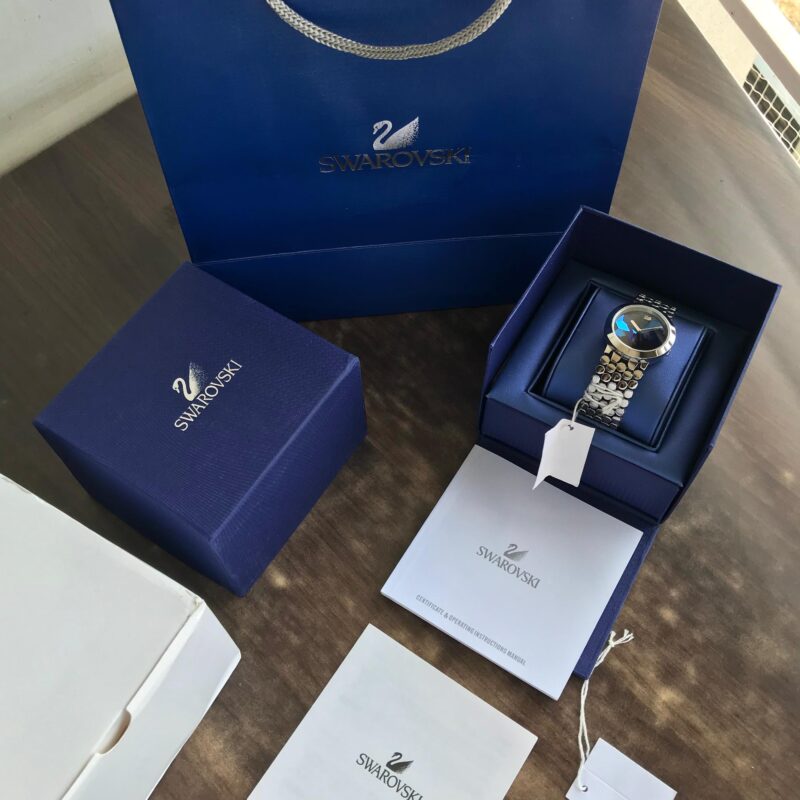 The Swarovski Lake Of Shimmer Crystal Watch is an eye-catching piece designed for those who want to make a statement with elegance. With its shimmering blue and silver hues, this watch effortlessly complements any outfit, whether you’re dressing up for a special occasion or going for a casual look.