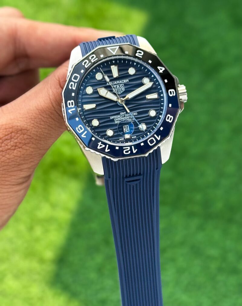 The Tag Heuer Aquaracer 7A features a striking blue dial, automatic movement, and a durable ceramic bezel, making it a sophisticated choice for any occasion.