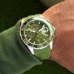 The dodecagon unidirectional rotating bezel is not just a design element; it’s practical, providing an easy grip for adjustments. Plus, the chronograph function adds a layer of functionality that watch lovers appreciate. With its solid steel back case and comfortable green fiber strap, this watch seamlessly combines style and durability.