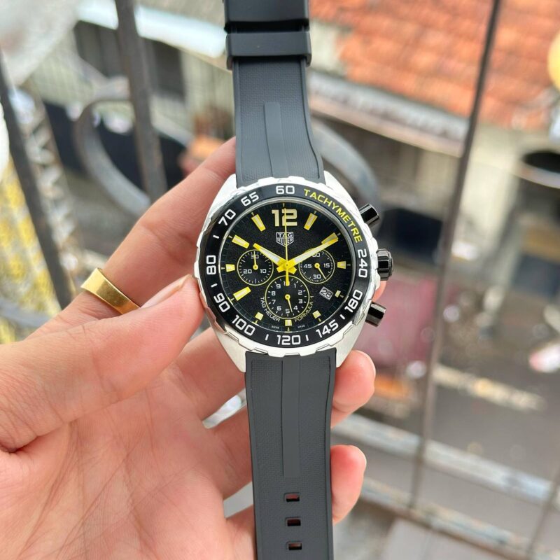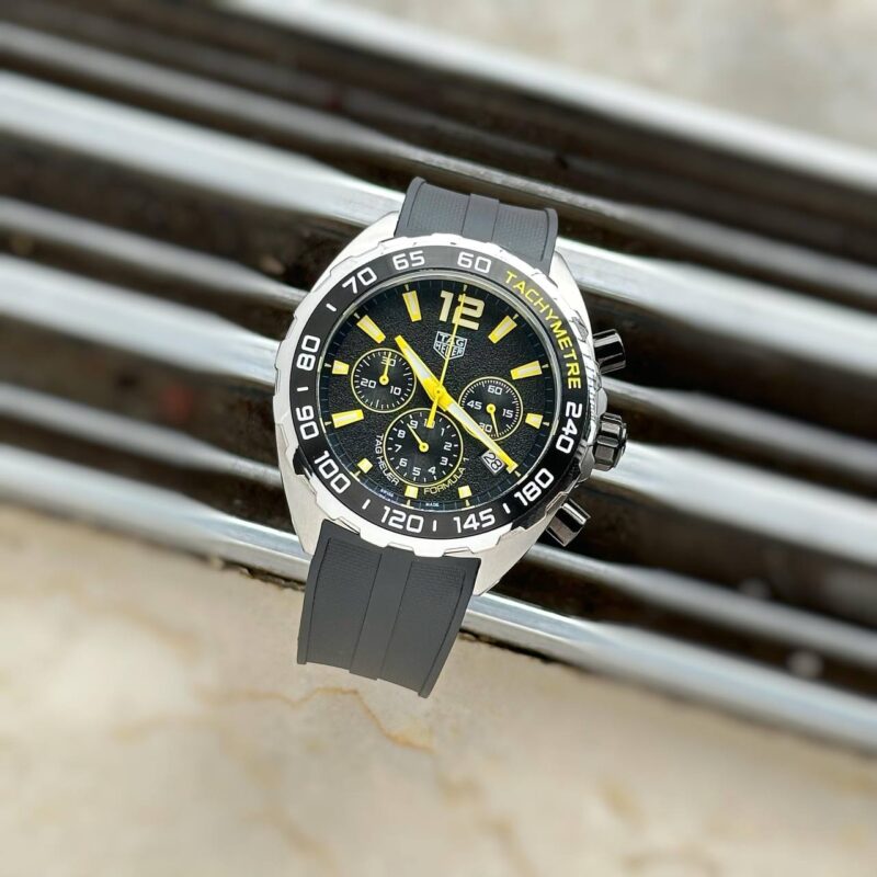 The Tag Heuer Carrera Formula 1 Limited Edition is a perfect blend of style and function, designed for those who appreciate a sporty yet sophisticated accessory. The 43mm stainless steel case offers durability while maintaining a sleek look. Its black dial, adorned with luminous markers, ensures readability in any lighting, making it as practical as it is stylish.
