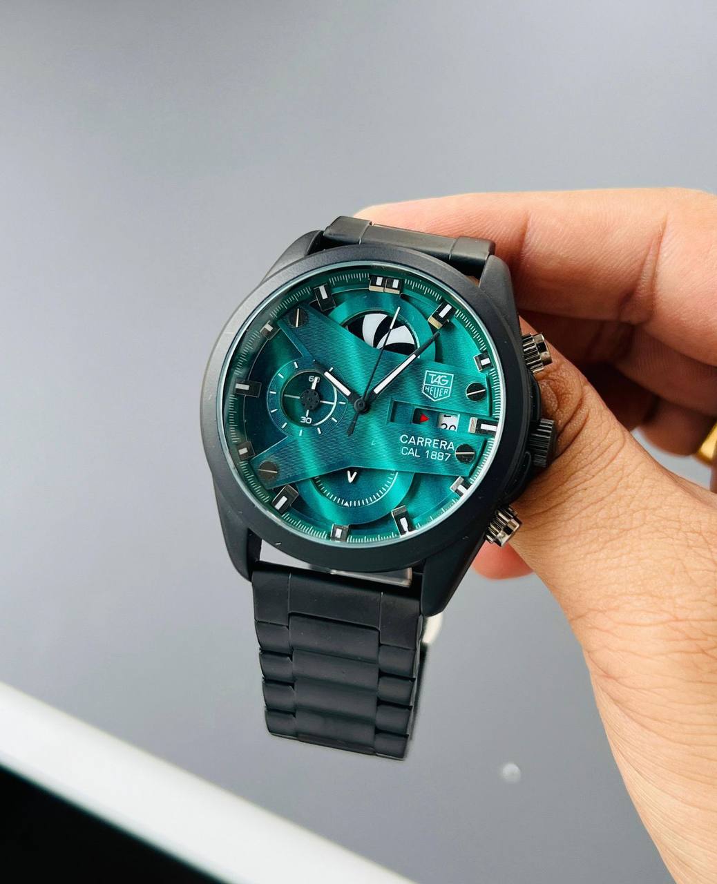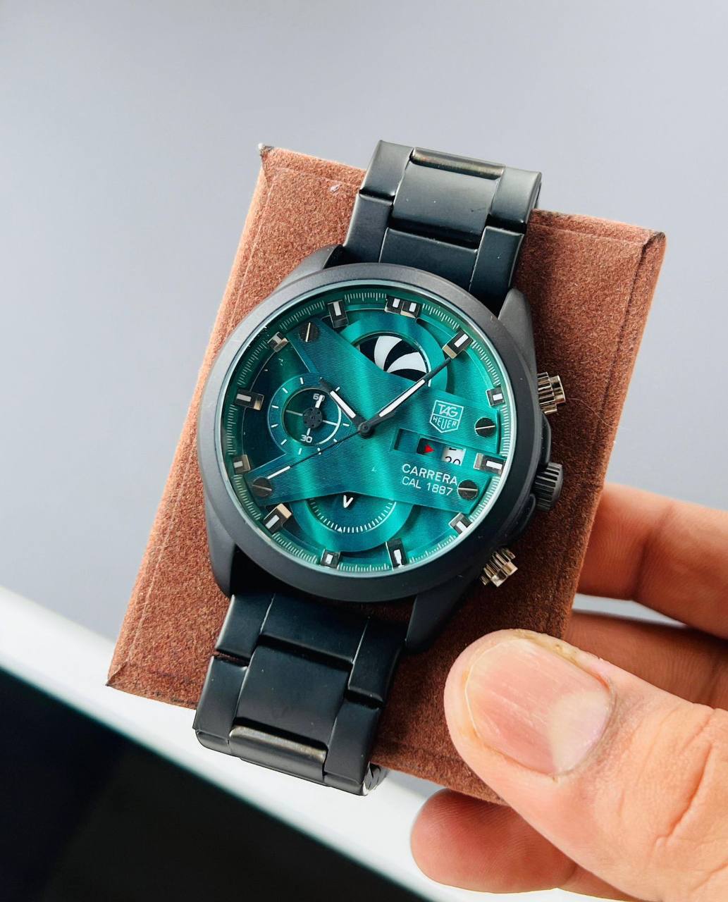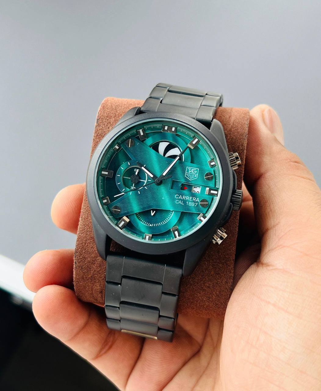 The Tag Heuer Grand Carrera 1887 Football Edition is a perfect blend of sporty style and advanced technology. Designed for football enthusiasts, this watch features a striking white dial that pops against the matte black stainless steel case. The chronograph function means you can time your training sessions with precision, while the high-end quartz movement ensures accurate timekeeping.