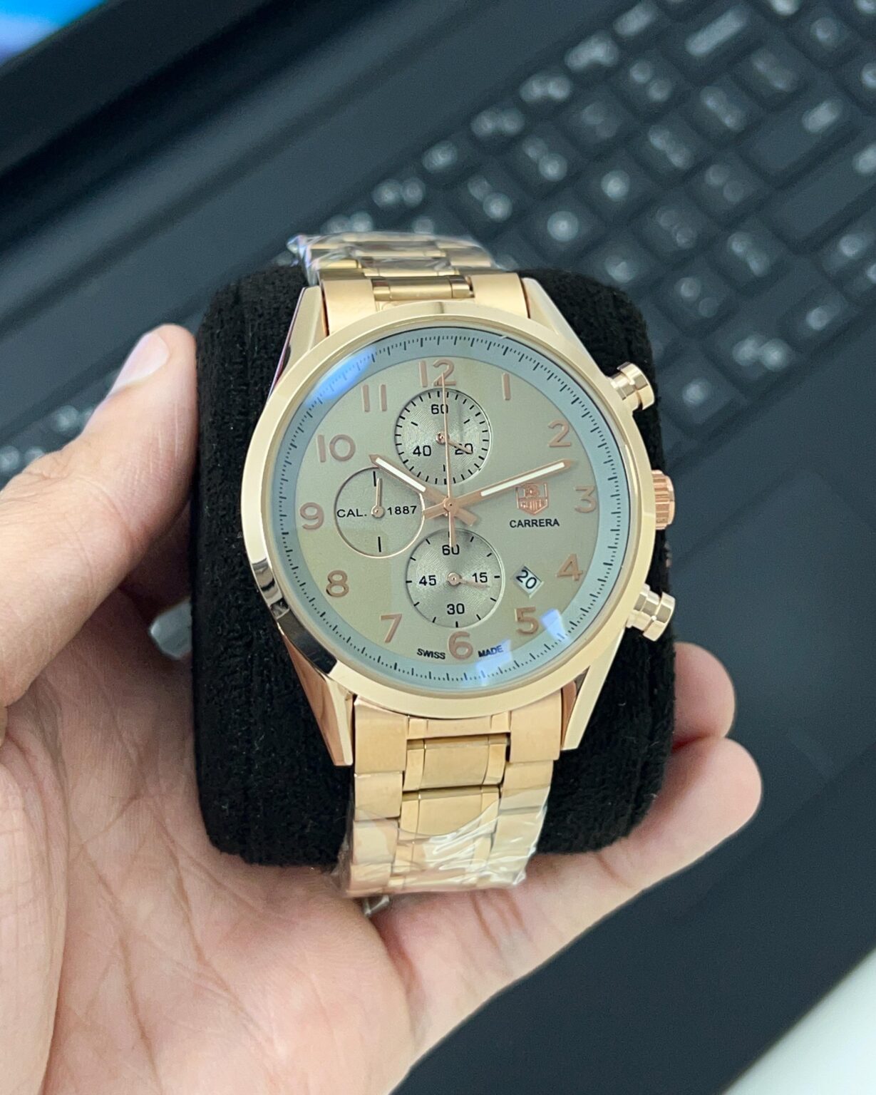 The Tag Heuer Grand Carrera Special Edition Rose Gold is more than just a watch; it’s a statement. Since its debut in 1986, this collection has captivated watch enthusiasts, blending timeless elegance with cutting-edge functionality. The Miyota quartz movement ensures precision, while the sports chronograph feature allows you to track time with ease.