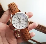 Featuring a 12-hour dial and a date indicator, it’s designed for practicality without sacrificing aesthetics. The working chronograph and 1-minute stopwatch add a sporty flair, making it perfect for those who lead an active lifestyle. The clear tinted glass enhances readability, ensuring that every detail is easily visible.