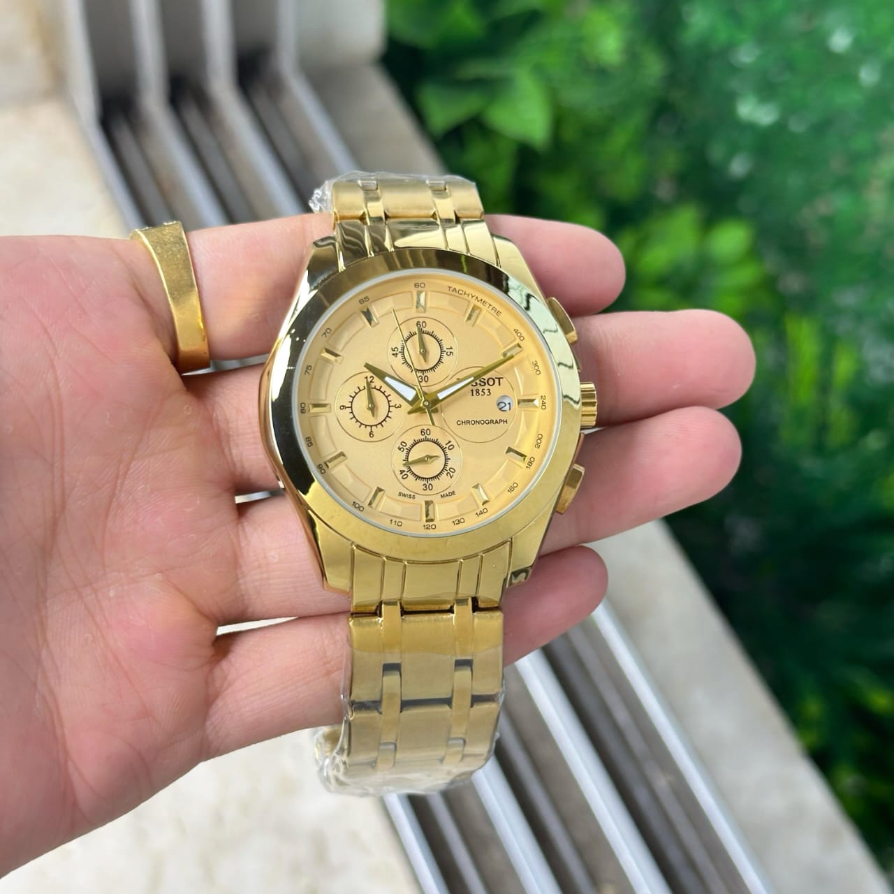 One of my favorite features is the date indicator, which adds a practical touch to its aesthetic appeal. The stainless steel gold bezel beautifully complements the 100% steel bracelet, creating a striking gold combination that catches the eye.