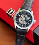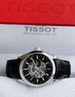 The Tissot Powermatic Automatic Skeleton Black is perfect for those who appreciate a blend of classic design and modern functionality. With its elegant solid silver bezel and black leather strap, this timepiece is designed for men who want to make a statement without saying a word.
