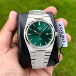 The Tissot PRX Emerald Green Dial is a watch that combines style and functionality, making it the perfect companion for everyday wear. Its striking emerald green dial catches the eye, while the brushed stainless steel case ensures durability and a modern touch.