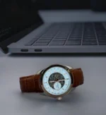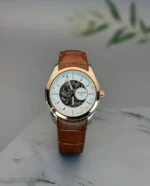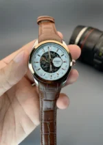 The elegant brown leather band adds a touch of sophistication, while the automatic movement ensures that you’ll always be on time without the hassle of manual winding. The durable mineral glass protects the dial, giving you peace of mind whether you’re at a business meeting or enjoying a night out.
