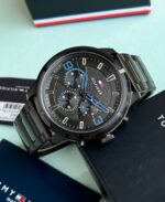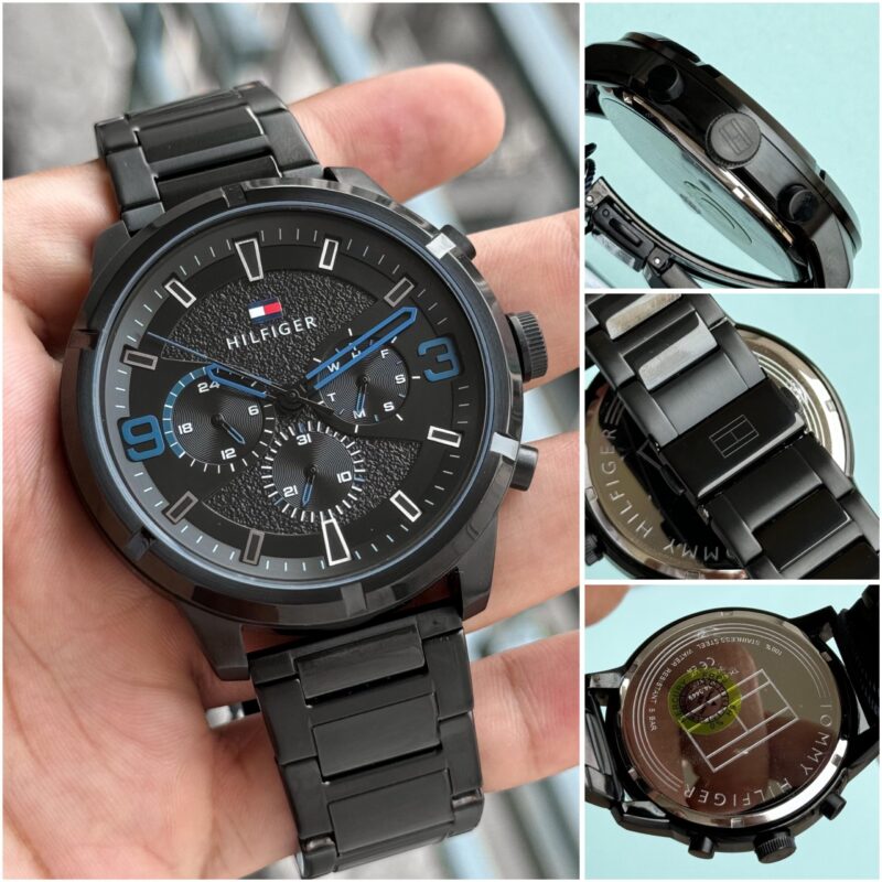 The Tommy Hilfiger Chronograph Black Dial is a perfect blend of style and functionality. With its striking 44mm round case, this watch not only serves as a reliable timekeeper but also makes a bold statement on your wrist. The analog display features a fully functional chronograph, allowing you to measure elapsed time with precision.