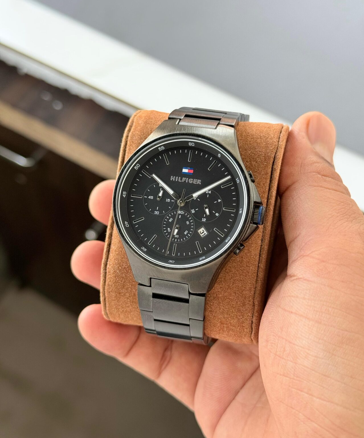 The adjustable black strap provides comfort and versatility, fitting seamlessly into your daily wardrobe. Plus, with a reliable quartz chronograph engine, you can count on precise performance every time you check the hour. Each watch comes packed in the official Tommy Hilfiger brand box, making it perfect for gifting or treating yourself.